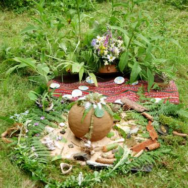 Der irdenen Kugel Geschenke der Fülle darbringen, dort am Feuer,